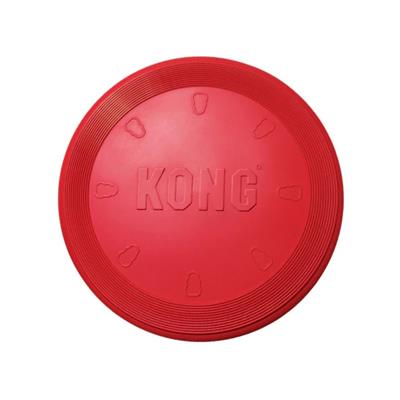 The KONG® Classic Flyer is a durable dog toy designed for fetching. Made from KONG's classic rubber, it allows for a forgiving catch and provides a dynamic rebound if your dog misses the initial toss. Enjoy the fun of fetching with a safer disc that promotes healthy activity